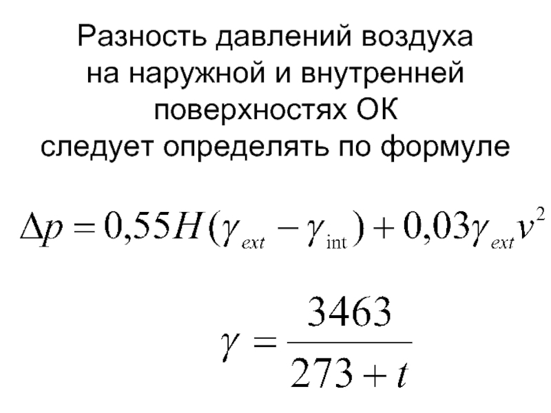 Слайд 2Разность давлений воздуха на наружной и внутренней поверхностях ОК следует определять по формуле