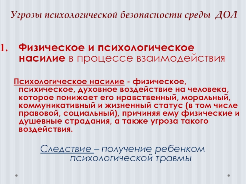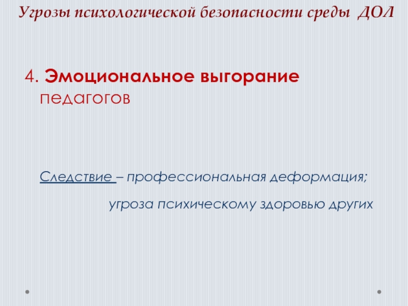 Слайд 18Угрозы психологической безопасности среды ДОЛ