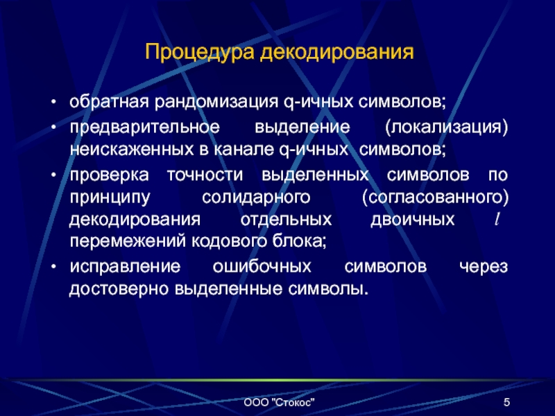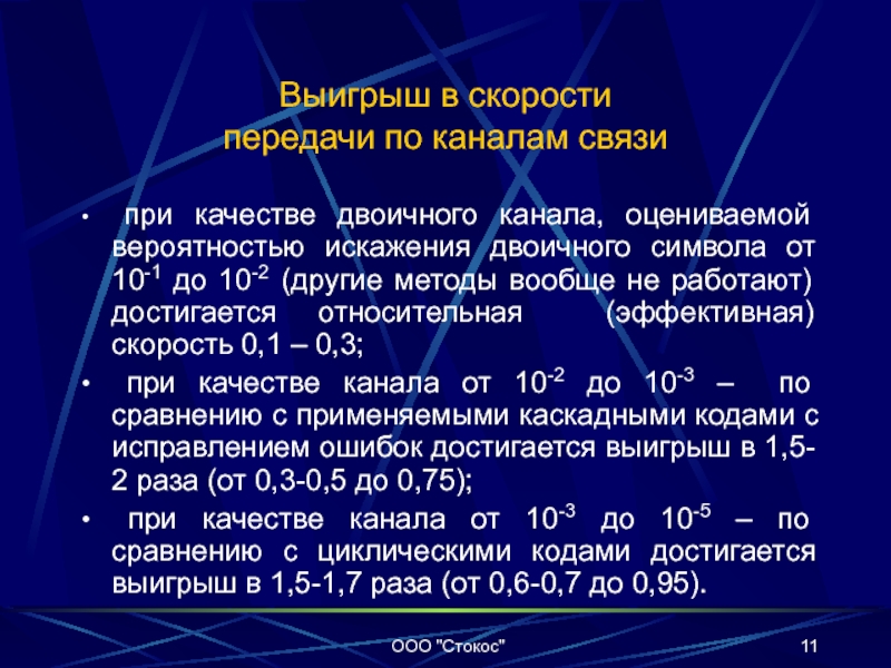 Скорость декодирования достигает 50 Мбит/сек и практически не зависит от параметров кода и от вероятности возникновения ошибок.
