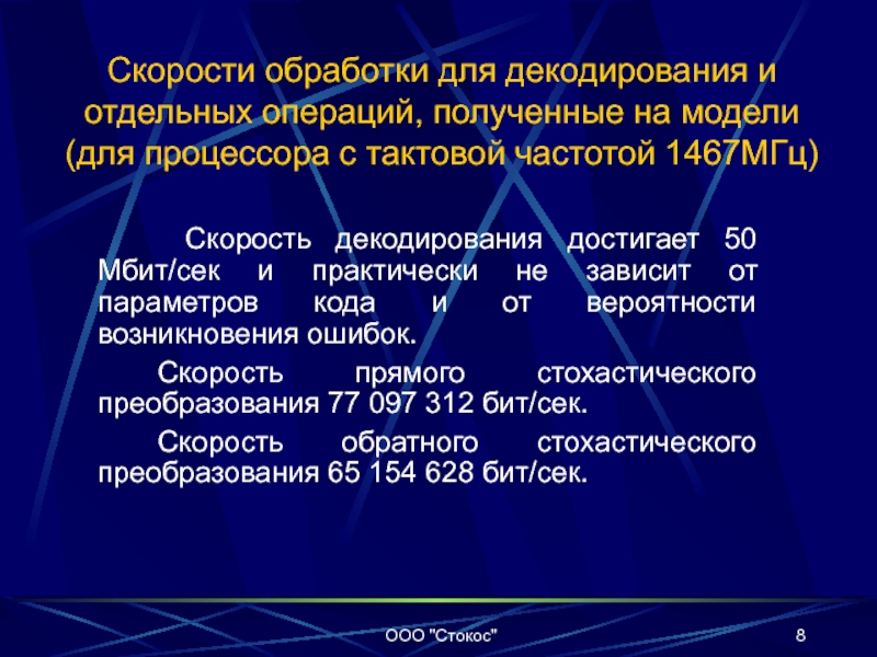 Скорость прямого стохастического преобразования 77 097 312 бит/сек.