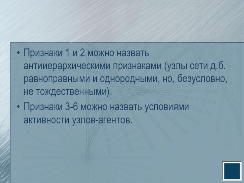 Признаки 3-6 можно назвать условиями активности узлов-агентов.