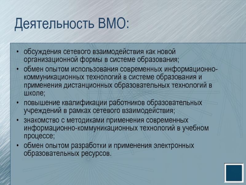 ВМО – одна из форм современного сетевого взаимодействия педагогов, реализуемая в