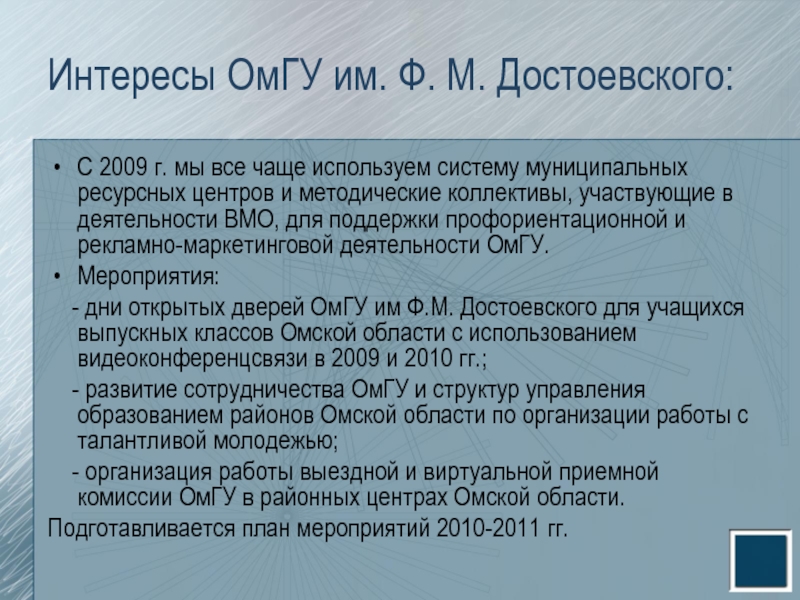 Слайд 10Интересы ОмГУ им. Ф. М. Достоевского: