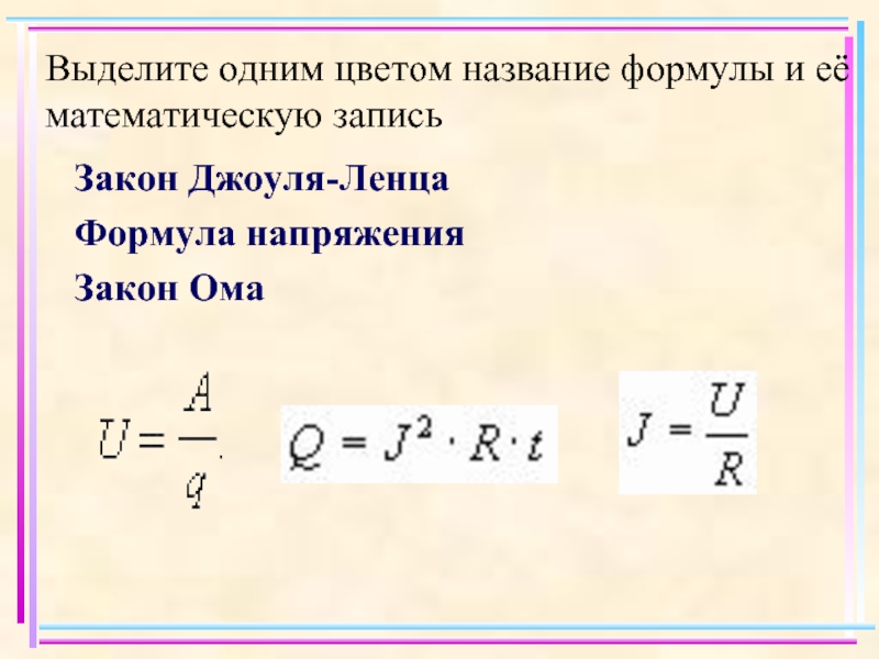 Слайд 8Выделите одним цветом название формулы и её математическую запись