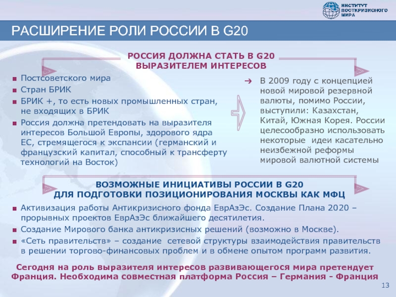 РОССИЯ ДОЛЖНА СТАТЬ В G20 ВЫРАЗИТЕЛЕМ ИНТЕРЕСОВ