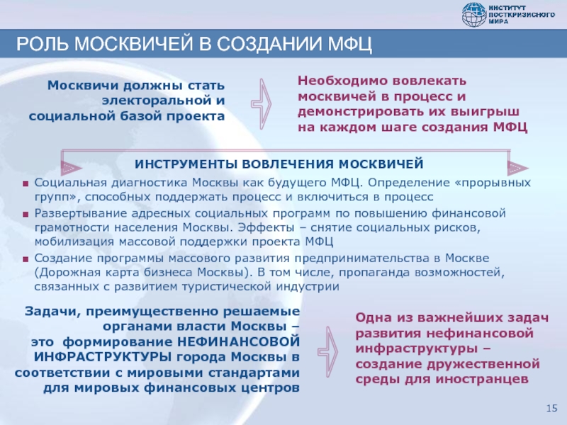 это формирование НЕФИНАНСОВОЙ ИНФРАСТРУКТУРЫ города Москвы в соответствии с мировыми стандартами для мировых финансовых центров
