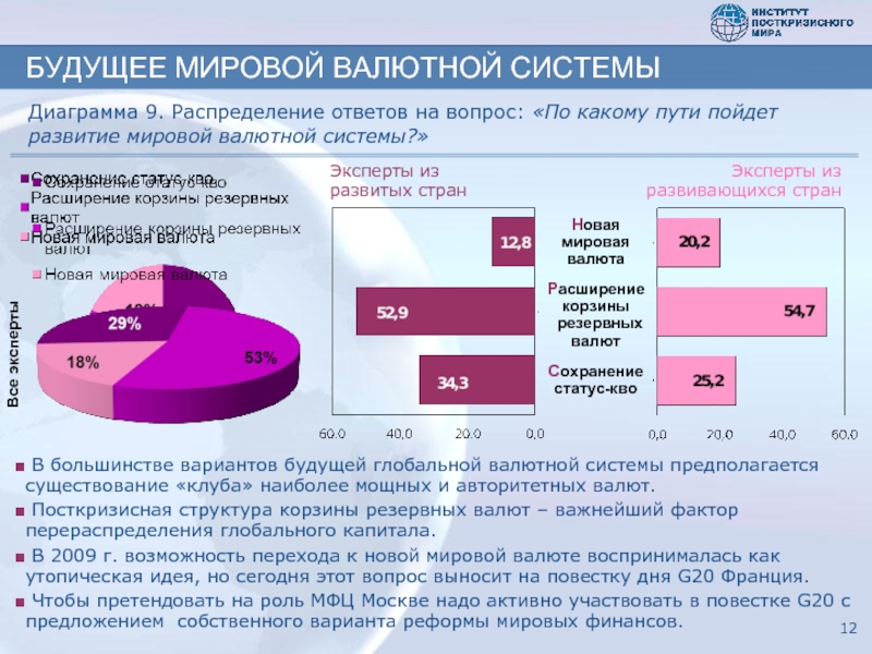 В 2009 году с концепцией новой мировой резервной валюты, помимо России, выступили: Казахстан, Китай, Южная Корея. России целесообразно использовать некоторые идеи касательно неизбежной реформы мировой валютной системы