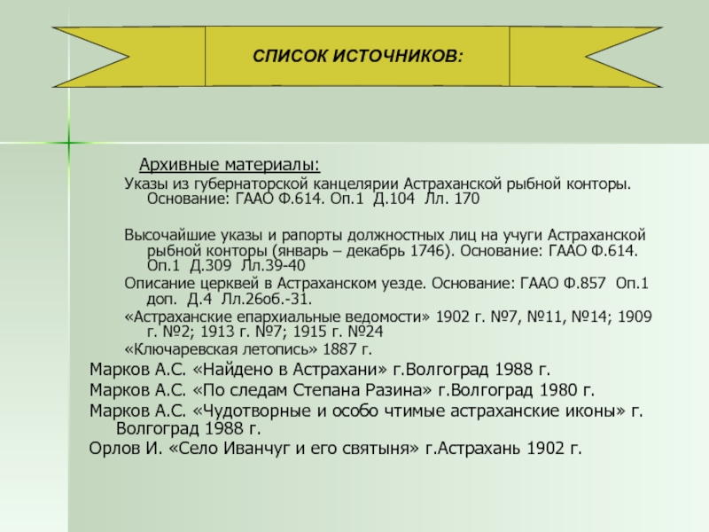 СПИСОК ИСТОЧНИКОВ: