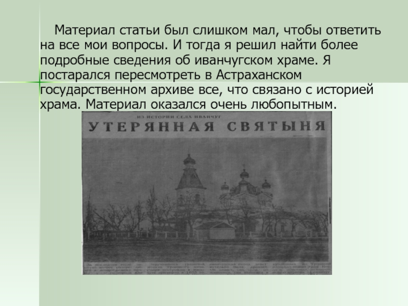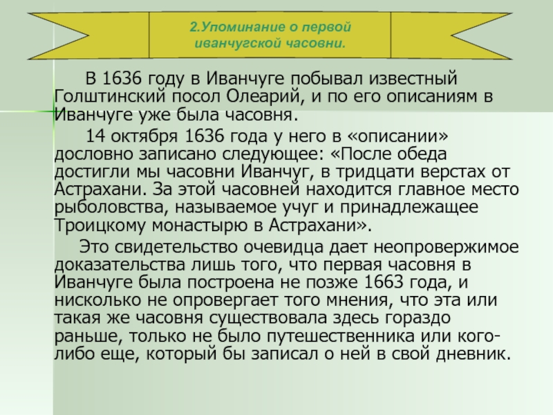 2.Упоминание о первой иванчугской часовни.