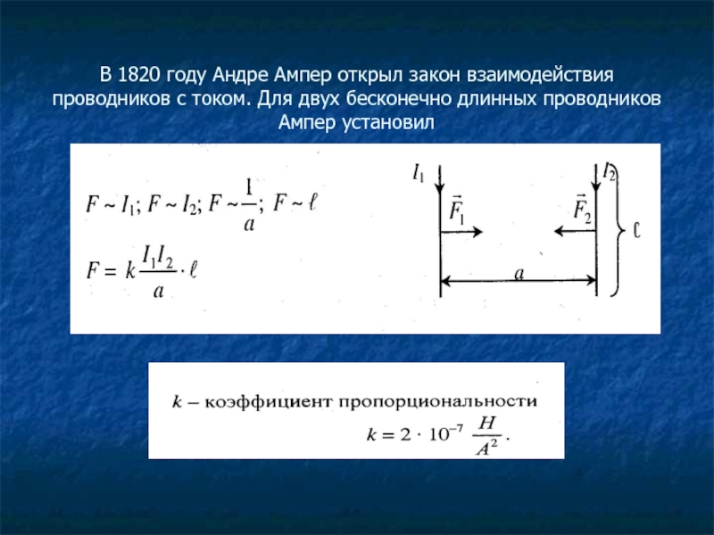 Слайд 3В 1820 году Андре Ампер открыл закон взаимодействия проводников с током.