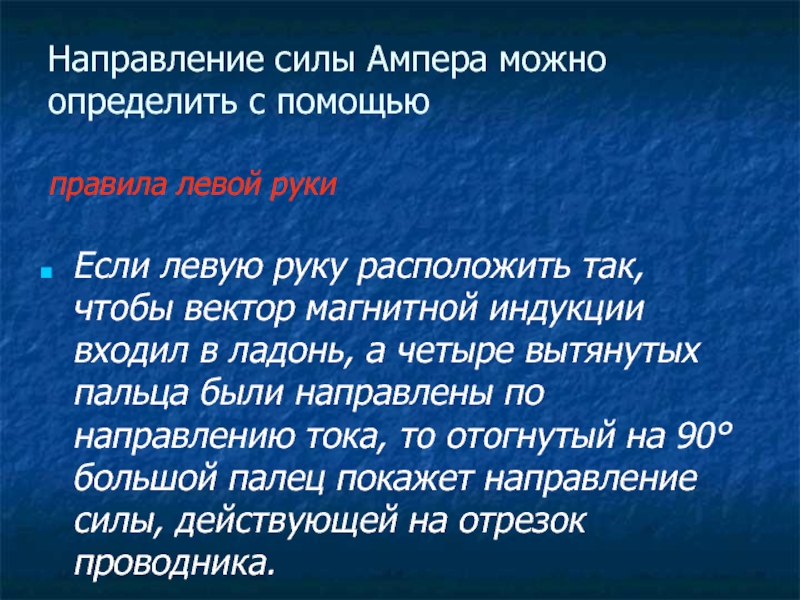 Слайд 11Направление силы Ампера можно определить с помощью правила левой руки