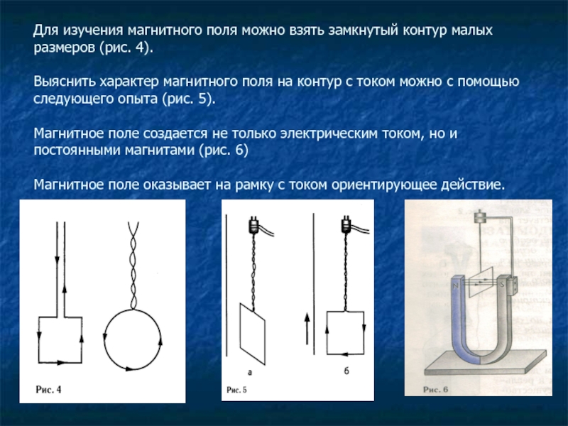 Слайд 5Для изучения магнитного поля можно взять замкнутый контур малых размеров (рис.