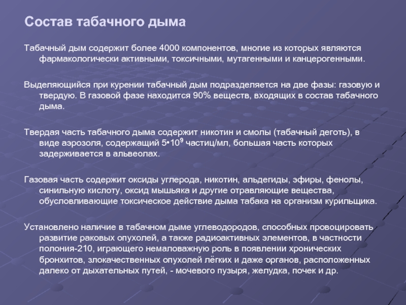 Табачный дым содержит более 4000 компонентов, многие из которых