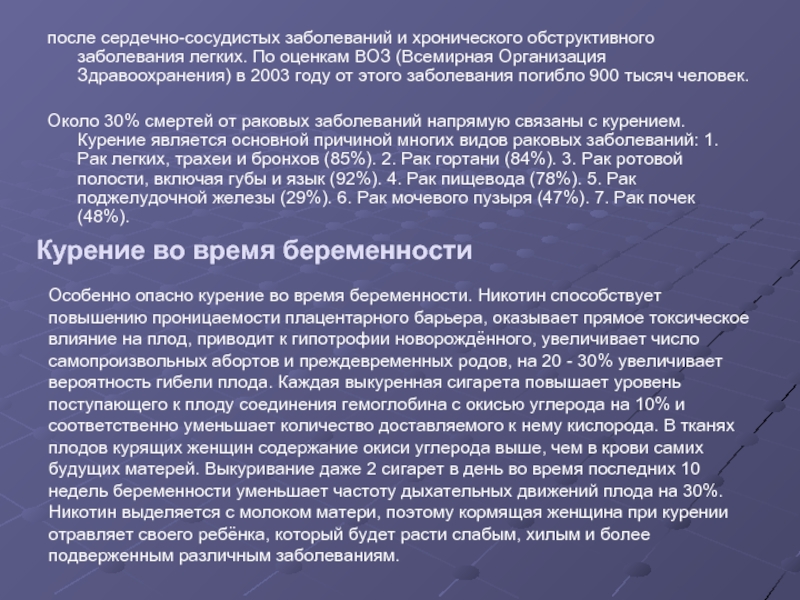 Слайд 12после сердечно-сосудистых заболеваний и хронического обструктивного заболевания легких. По оценкам ВОЗ