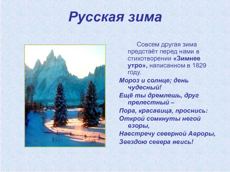 нами в стихотворении «Зимнее утро», написанном в 1829 году.