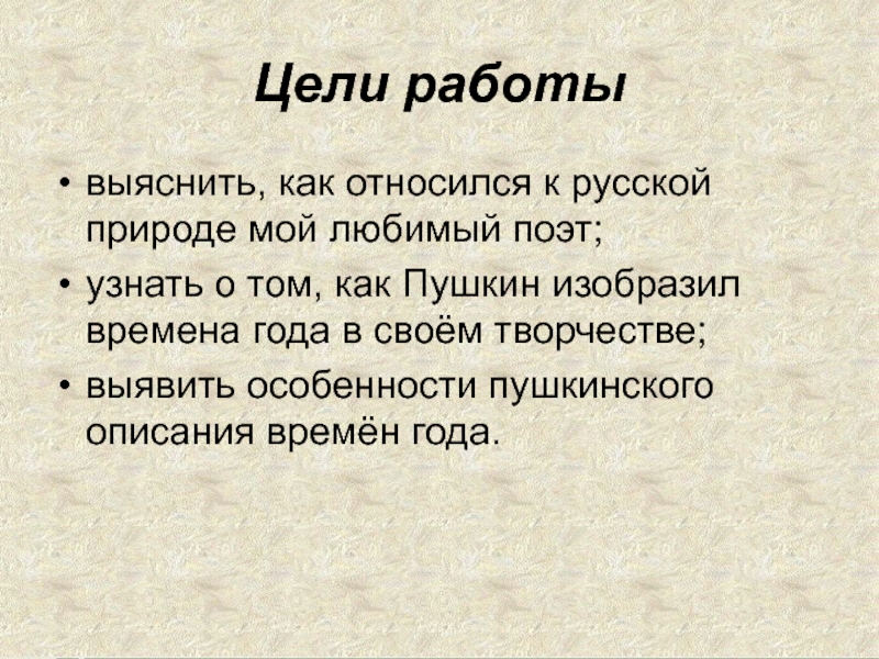 Но особенное внимание А.С.Пушкин уделял временам года. В произведениях поэта найдут отражение все времена года. О них я хочу рассказать подробнее.
