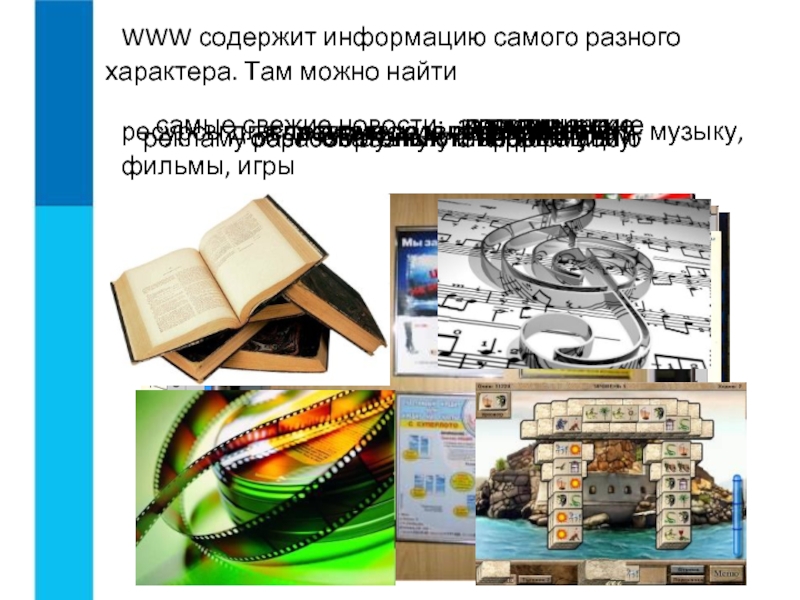 ресурсы для досуга и развлечений - книги, музыку, фильмы, игры
