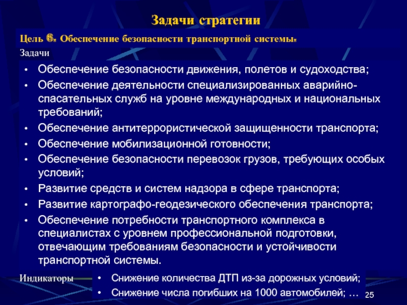 Цель 6. Обеспечение стандартов безопасности транспортной системы на уровне развитых стран.