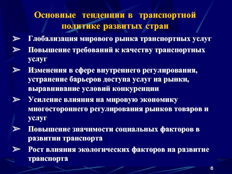 5. Принципы государственного регулирования функционирования и развития транспортной системы