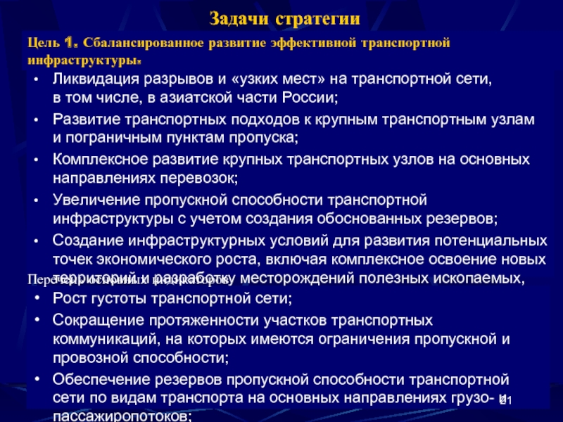 4. Цель, задачи и приоритеты развития транспорта на долгосрочную перспективу