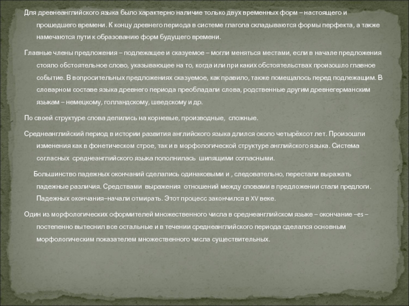 Слайд 10Для древнеанглийского языка было характерно наличие только двух временных форм –