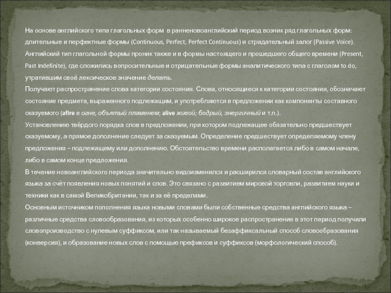 Слайд 12В новоанглийский период произошёл ряд изменений в системе морфологии и синтаксиса