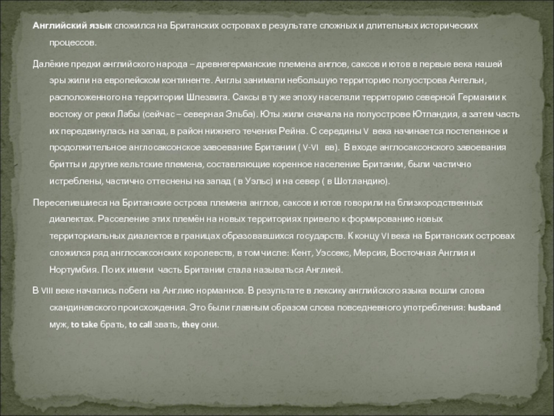 Слайд 6Английский язык сложился на Британских островах в результате сложных и длительных