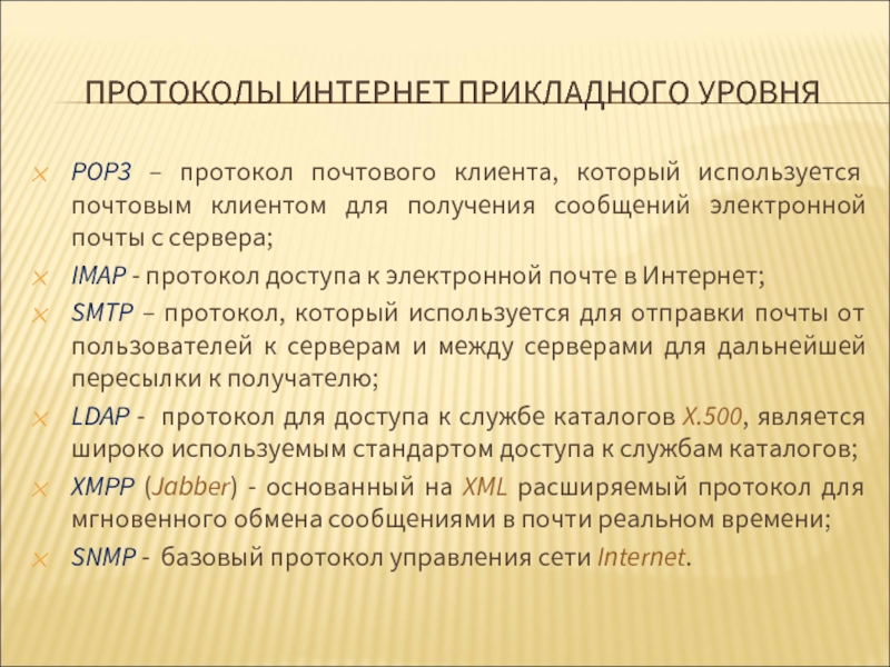 Слайд 52ПРОТОКОЛЫ ИНТЕРНЕТ ПРИКЛАДНОГО УРОВНЯ