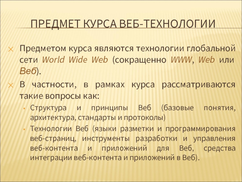 Слайд 2ПРЕДМЕТ КУРСА ВЕБ-ТЕХНОЛОГИИ