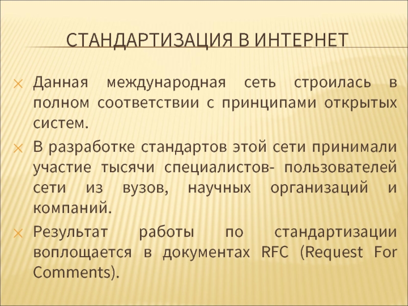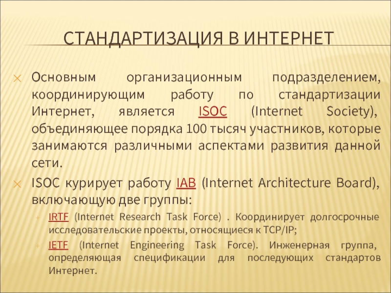 Слайд 10СТАНДАРТИЗАЦИЯ В ИНТЕРНЕТ