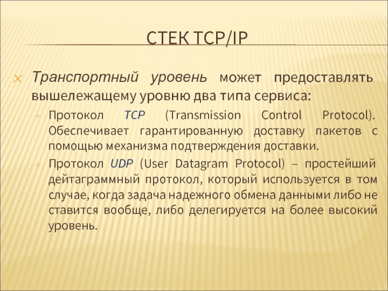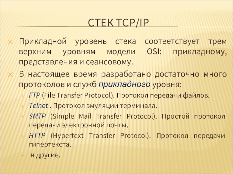 Прикладной уровень стека соответствует трем верхним уровням модели OSI: прикладному,