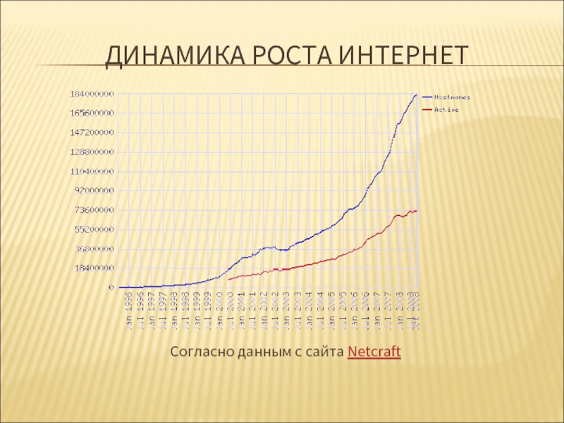 Слайд 5ДИНАМИКА РОСТА ИНТЕРНЕТ