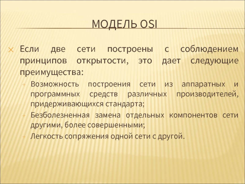 Возможность построения сети из аппаратных и программных средств различных производителей, придерживающихся стандарта;