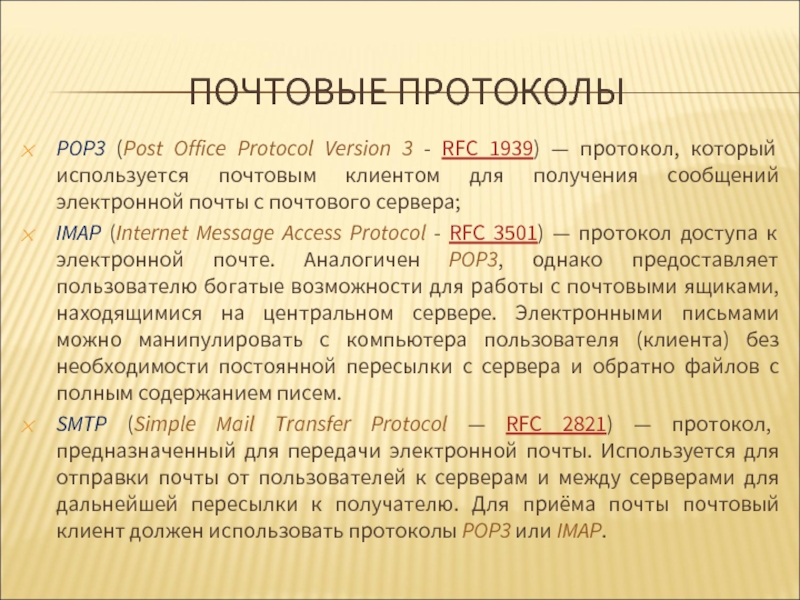 Слайд 55ПОЧТОВЫЕ ПРОТОКОЛЫ