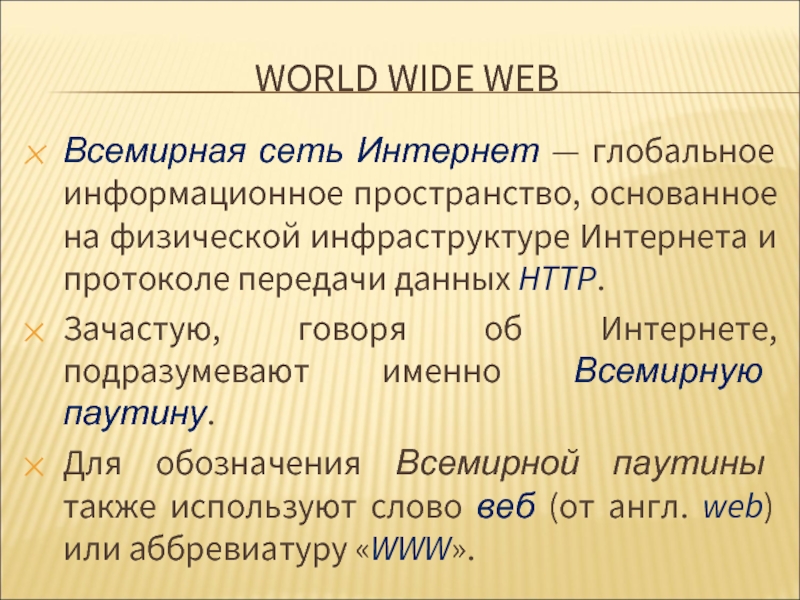 Зачастую, говоря об Интернете, подразумевают именно Всемирную паутину.