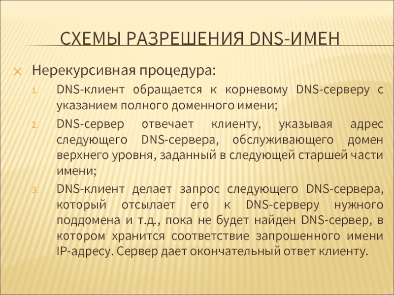 Слайд 40СХЕМЫ РАЗРЕШЕНИЯ DNS-ИМЕН