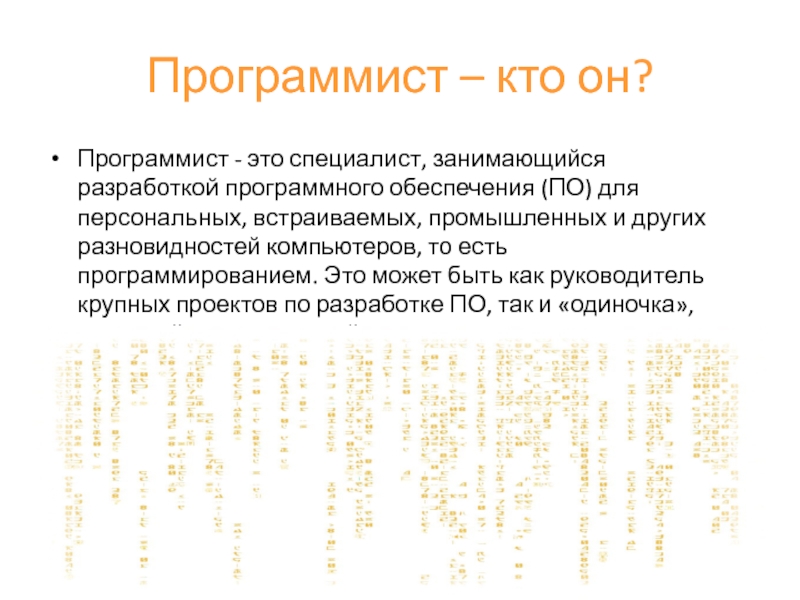 Программист - это специалист, занимающийся разработкой программного обеспечения