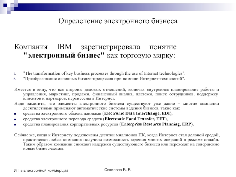 Надо заметить, что элементы электронного бизнеса существуют уже давно – многие компании десятилетиями применяют автоматические системы ведения бизнеса, такие как: