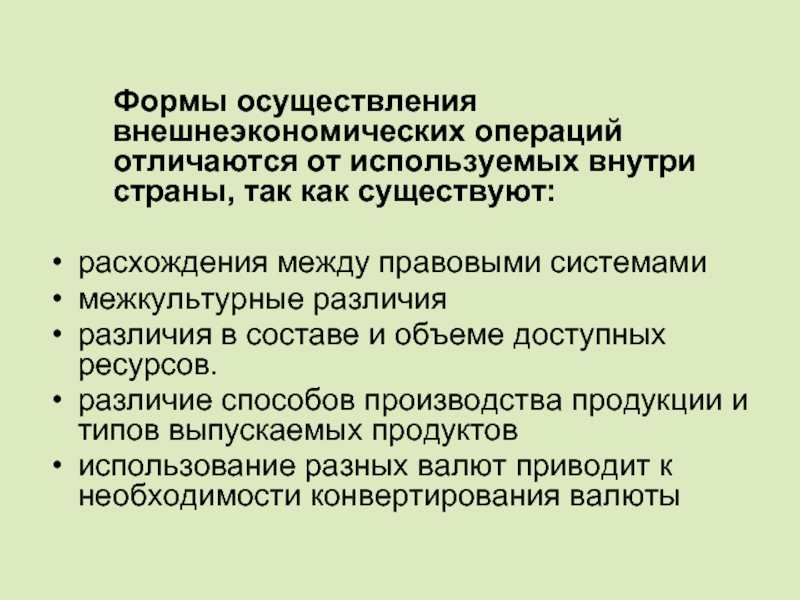 Формы осуществления внешнеэкономических операций отличаются от используемых внутри страны,