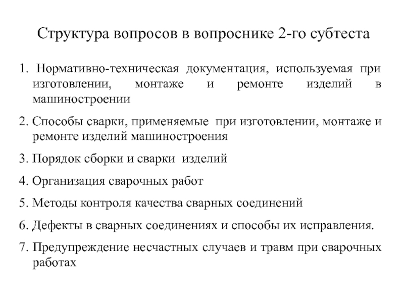 Слайд 6Структура вопросов в вопроснике 2-го субтеста