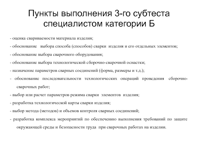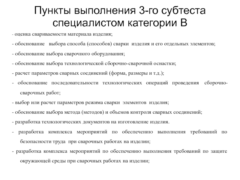 Слайд 10Пункты выполнения 3-го субтеста специалистом категории Б