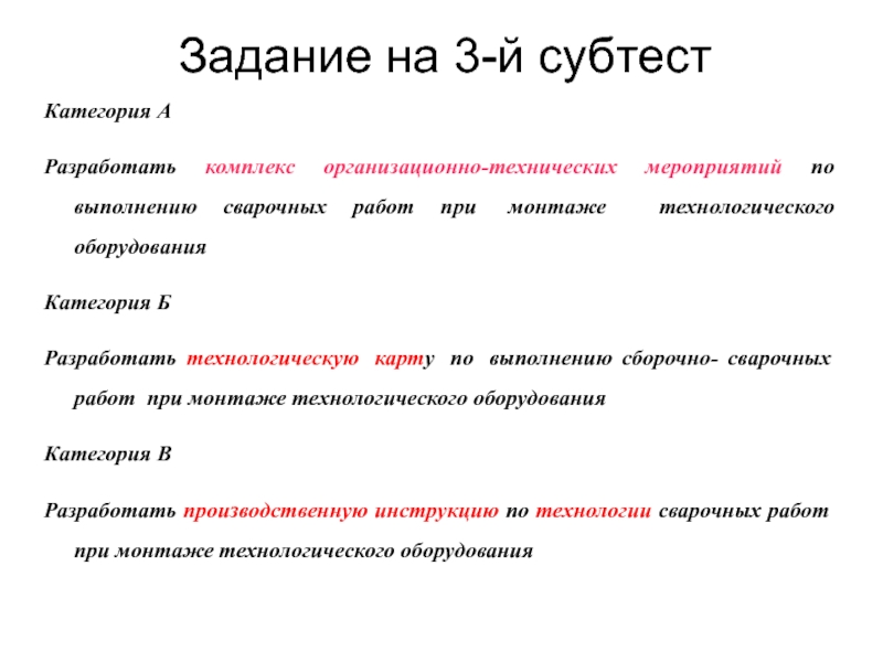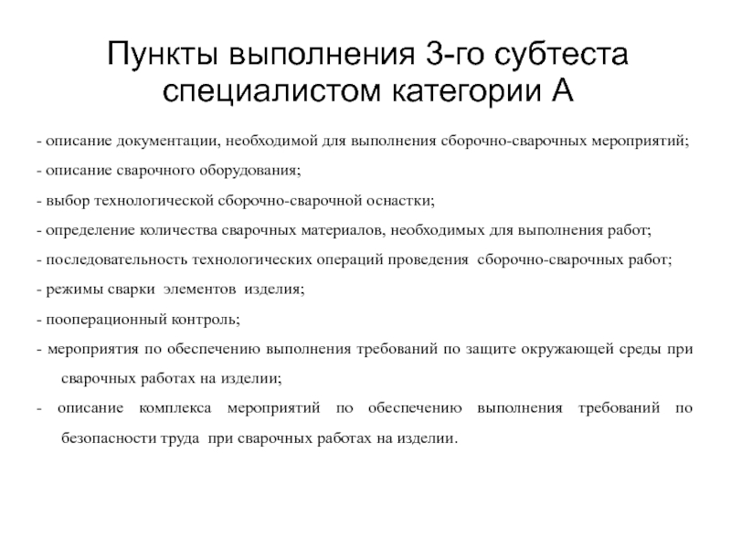 Слайд 9Пункты выполнения 3-го субтеста специалистом категории А