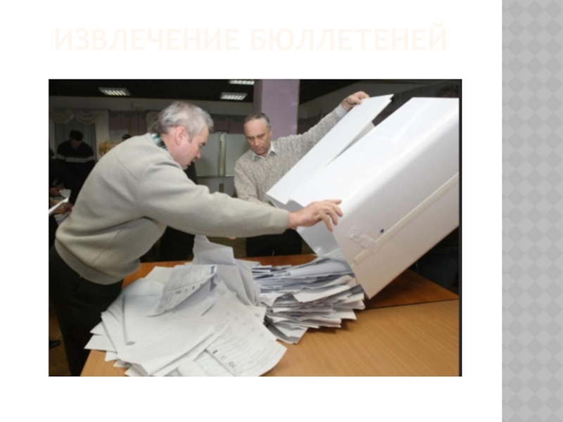 Слайд 10ЧЛЕНЫ УЧАСТКОВОЙ ИЗБИРАТЕЛЬНОЙ ГАСЯТ, ОСТАВШИЕСЯ БЮЛЛЕТЕНИ.