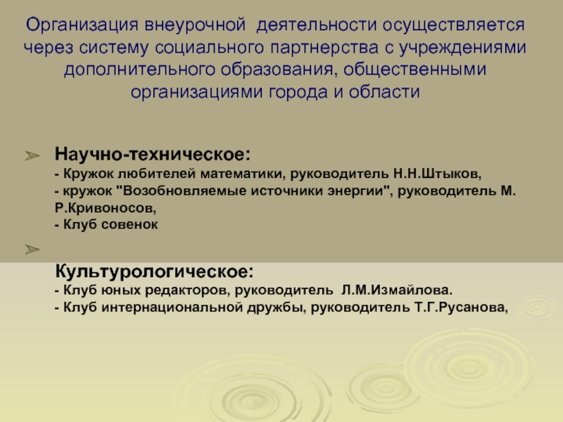 - Кружок любителей математики, руководитель Н.Н.Штыков,