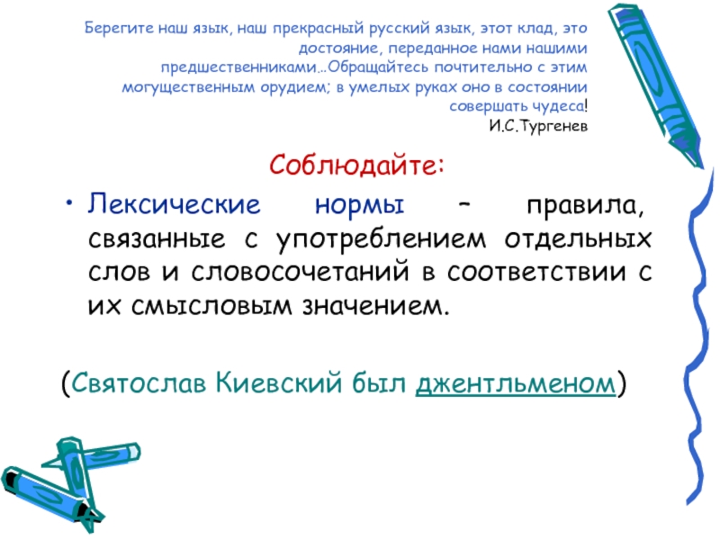 Лексические нормы – правила, связанные с употреблением отдельных слов и словосочетаний в соответствии с их смысловым значением.