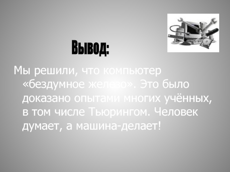 Мы решили, что компьютер «бездумное железо». Это было доказано опытами