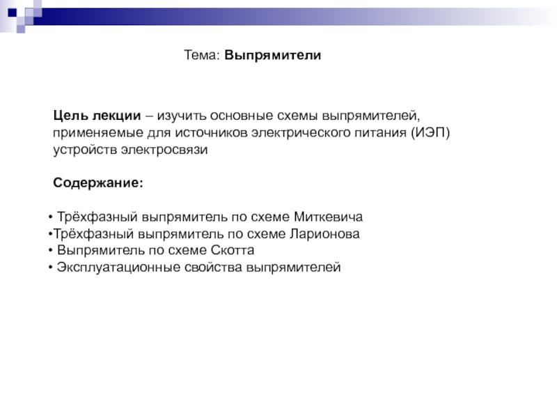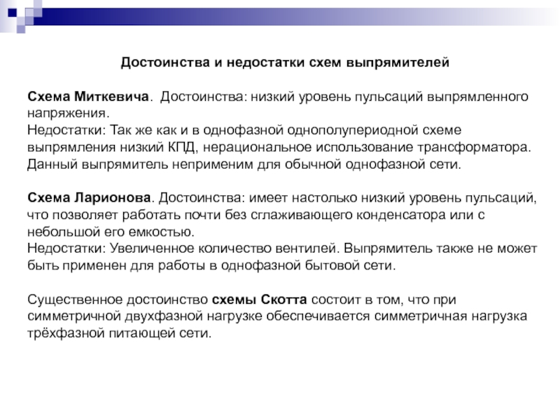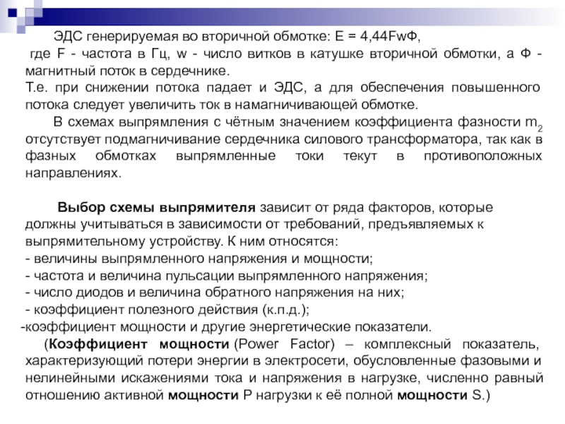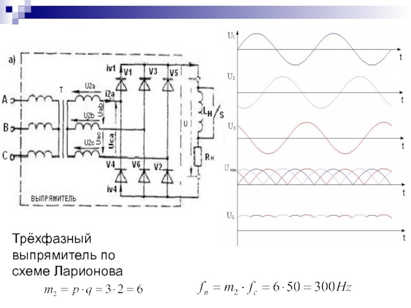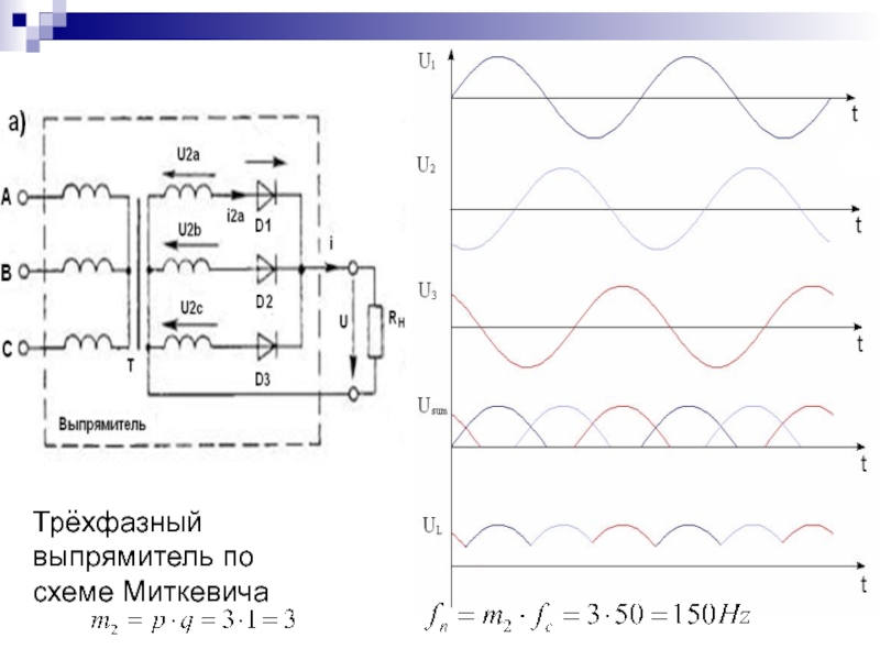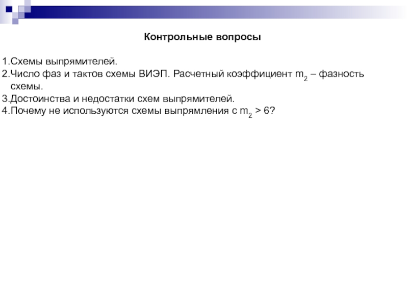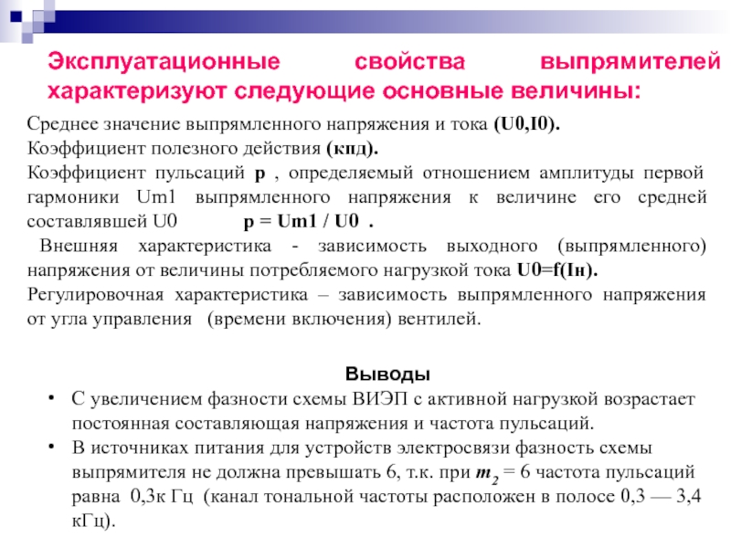 В источниках питания для устройств электросвязи фазность схемы выпрямителя не должна превышать 6, т.к. при m2 = 6 частота пульсаций равна 0,3к Гц (канал тональной частоты расположен в полосе 0,3 — 3,4 кГц).