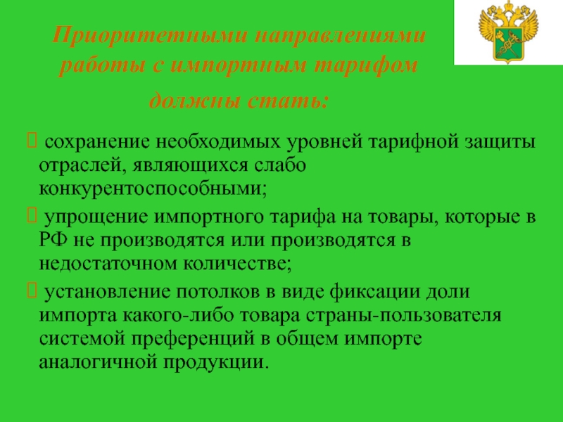 пересмотр действующего перечня преференциальных товаров в сторону увеличения в нем промышленной продукции, в которой нуждается отечественная промышленность;
