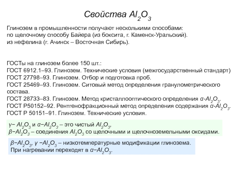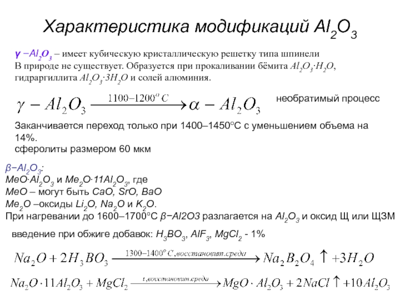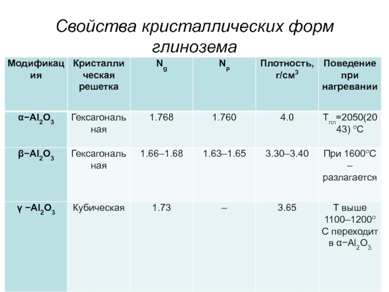 β−Al2O3, γ −Al2O3 – низкотемпературные модификации глинозема.