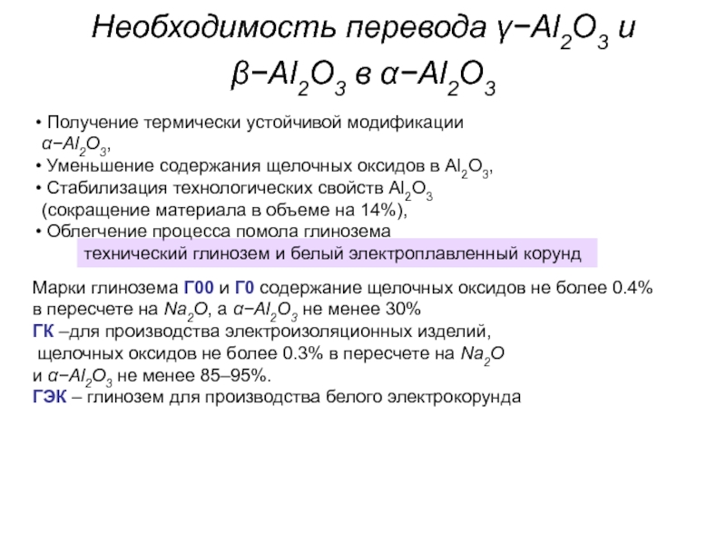 Марки глинозема Г00 и Г0 содержание щелочных оксидов не более 0.4%